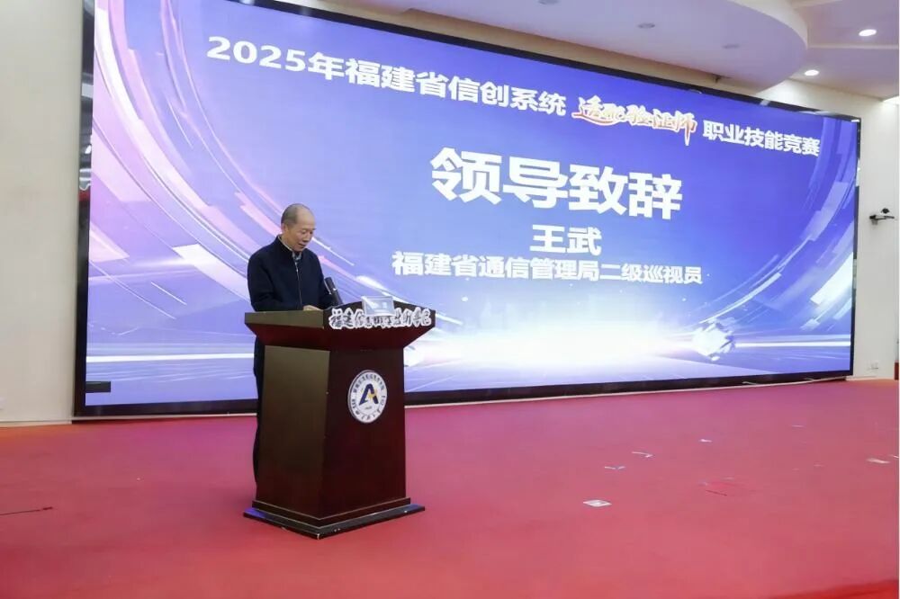 福建省通信管理局党组成员、二级巡视员王武,福建信息职业技术学院校长江吉彬出席颁奖仪式并致辞。