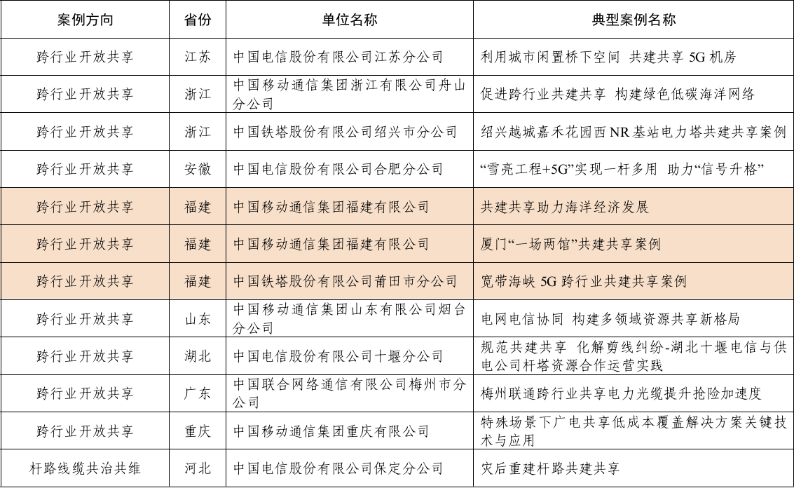 福建省3个案例入选工信部电信基础设施共建共享典型案例