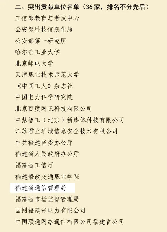 福建省通信管理局获评突出贡献单位