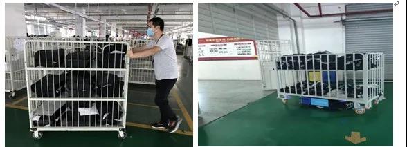图说:人工推运升级为5G AGV自动运输,产线物流作业效率提升150%。