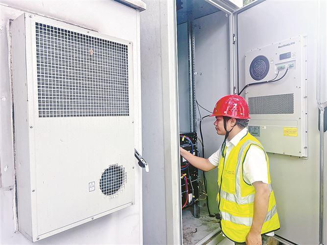 厦门铁塔公司人员在黄地村基站检修设备。(厦门铁塔 供图)